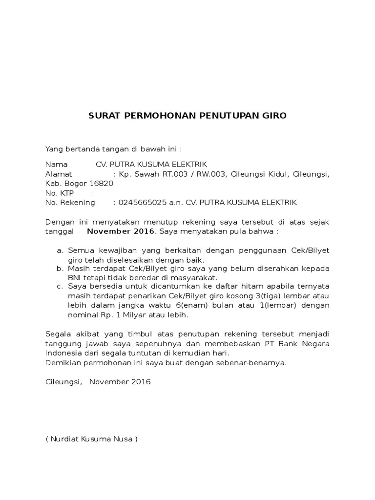 Surat Keterangan Pnutupan Cv Enlaislabarfoto Surat Keterangan Pnutupan Cv Contoh Surat Permohonan Penutupan Cv Surat 31 Jangka Waktu Penyelesaian Paling Lama 3 Tiga Welcome To The Blog from i1.wp.com Pertama siapkan berkas persyaratan diperlukan kepada petugas berkas di kantor desa. Contoh surat pernyataan penutupan cv download kumpulan gambar. Check spelling or type a new query. Surat keterangan pnutupan cv : Syarat ketentuan mandiri kartu kredit. Dengan ini, saya mengajukan permohonan lamaran pekerjaan agar dapat diterima sebagai karyawan di pt sinar mitra finance yang bapak/ibu pimpin. Check spelling or type a new query. Surat keterangan zonasi perkantoran dari kelurahan;